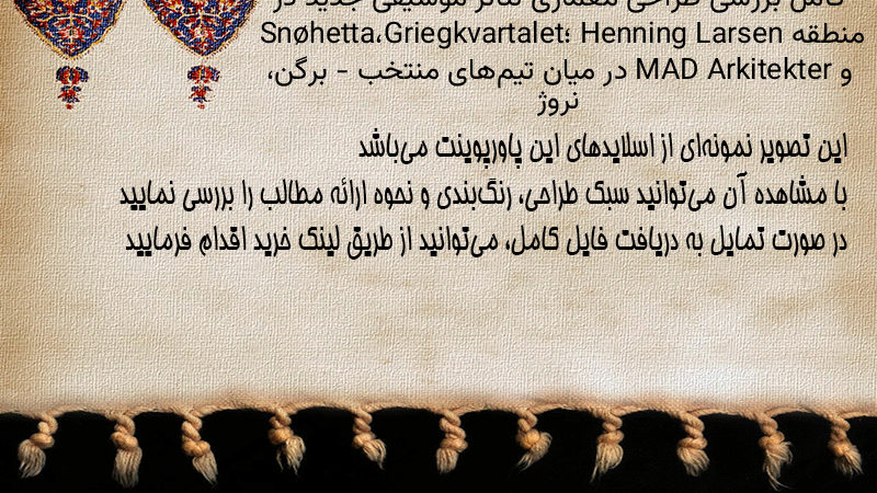 پاورپوینت کامل بررسی طراحی معماری تئاتر موسیقی جدید در منطقه Griegkvartalet؛ Henning Larsen، Snøhetta و MAD Arkitekter در میان تیمهای منتخب – برگن، نروژ