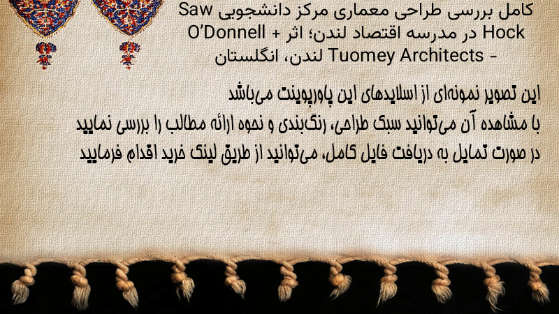 پاورپوینت کامل بررسی طراحی معماری مرکز دانشجویی Saw Hock در مدرسه اقتصاد لندن؛ اثر O’Donnell + Tuomey Architects – لندن، انگلستان