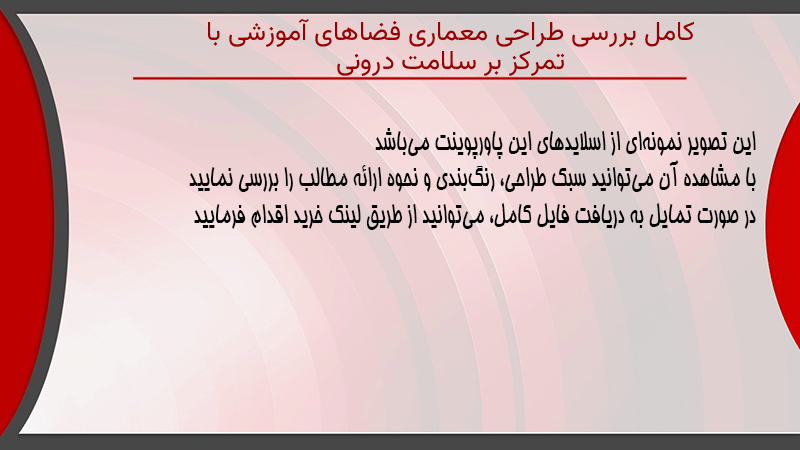 پاورپوینت کامل بررسی طراحی معماری فضاهای آموزشی با تمرکز بر سلامت درونی