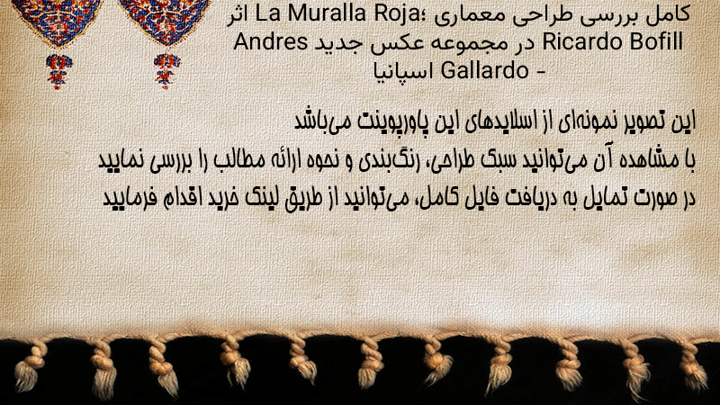 پاورپوینت کامل بررسی طراحی معماری La Muralla Roja؛ اثر Ricardo Bofill در مجموعه عکس جدید Andres Gallardo – اسپانیا