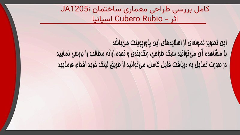 پاورپوینت کامل بررسی طراحی معماری ساختمان JA1205؛ اثر Cubero Rubio – اسپانیا