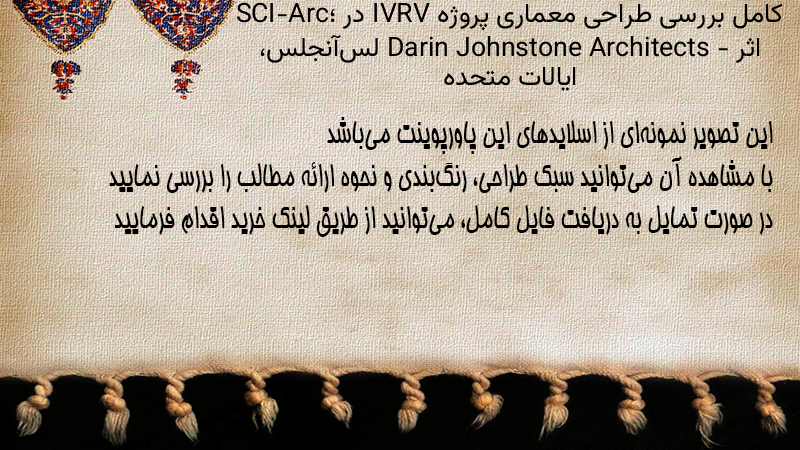 پاورپوینت کامل بررسی طراحی معماری پروژه IVRV در SCI-Arc؛ اثر Darin Johnstone Architects – لسآنجلس، ایالات متحده
