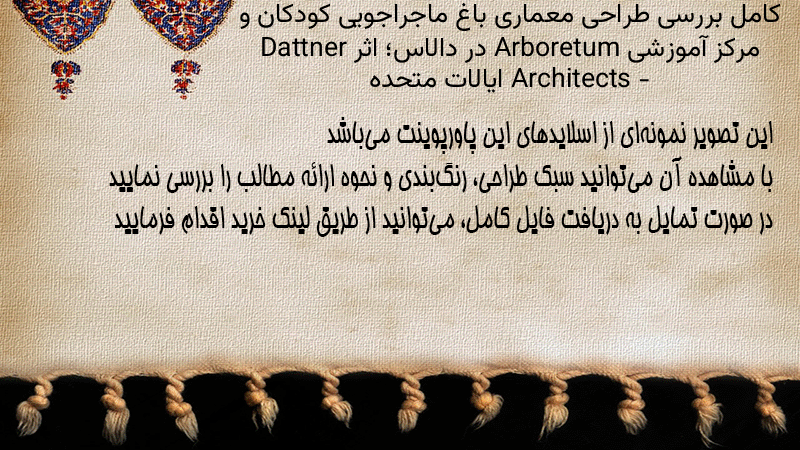پاورپوینت کامل بررسی طراحی معماری باغ ماجراجویی کودکان و مرکز آموزشی Arboretum در دالاس؛ اثر Dattner Architects – ایالات متحده