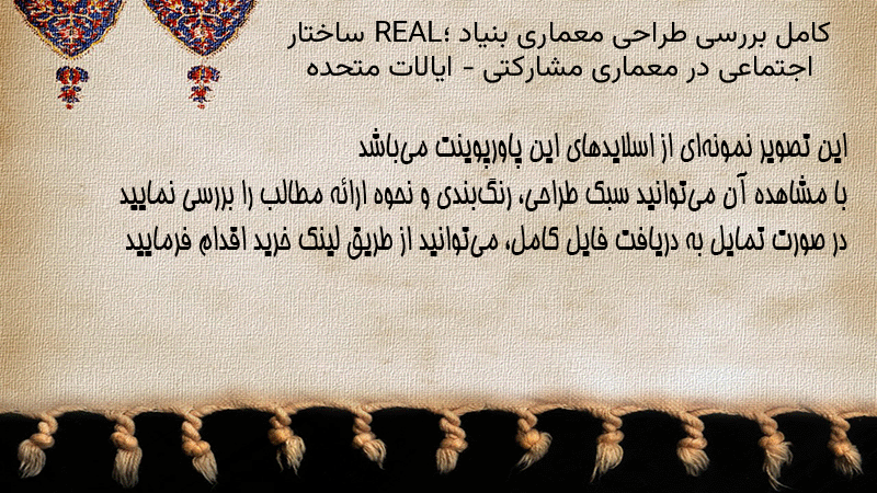 پاورپوینت کامل بررسی طراحی معماری بنیاد REAL؛ ساختار اجتماعی در معماری مشارکتی – ایالات متحده