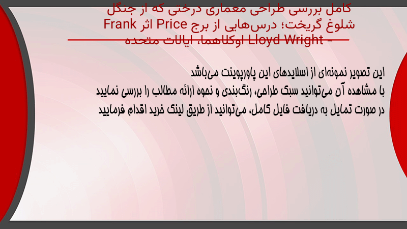 پاورپوینت کامل بررسی طراحی معماری درختی که از جنگل شلوغ گریخت؛ درسهایی از برج Price اثر Frank Lloyd Wright – اوکلاهما، ایالات متحده