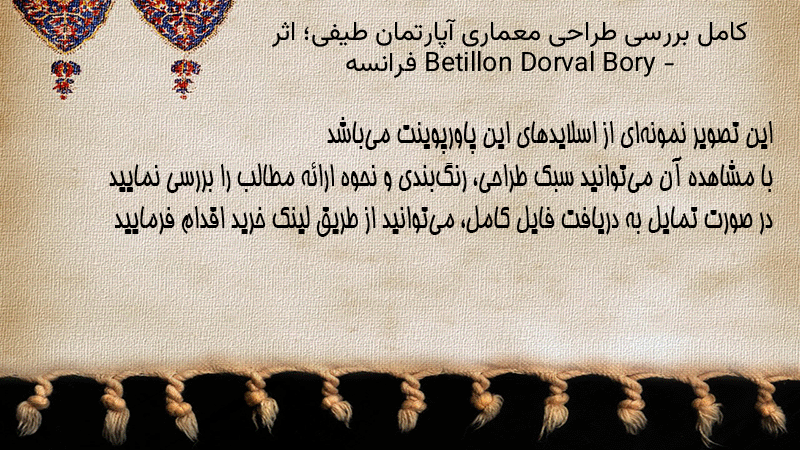 پاورپوینت کامل بررسی طراحی معماری آپارتمان طیفی؛ اثر Betillon Dorval Bory – فرانسه