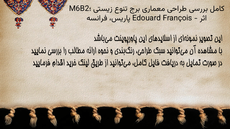 پاورپوینت کامل بررسی طراحی معماری برج تنوع زیستی M6B2؛ اثر Edouard François – پاریس، فرانسه