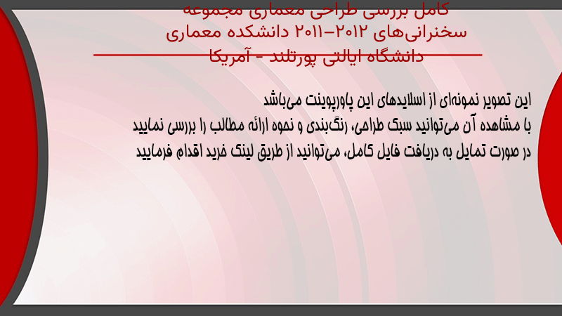 پاورپوینت کامل بررسی طراحی معماری مجموعه سخنرانیهای ۲۰۱۱–۲۰۱۲ دانشکده معماری دانشگاه ایالتی پورتلند – آمریکا