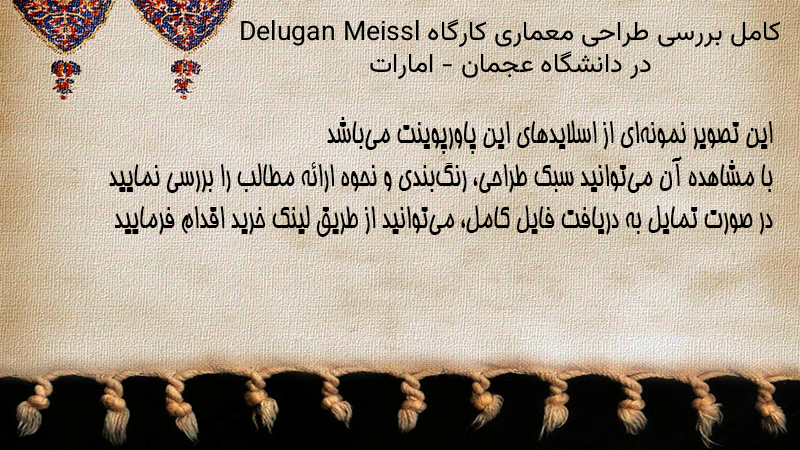 پاورپوینت کامل بررسی طراحی معماری کارگاه Delugan Meissl در دانشگاه عجمان – امارات