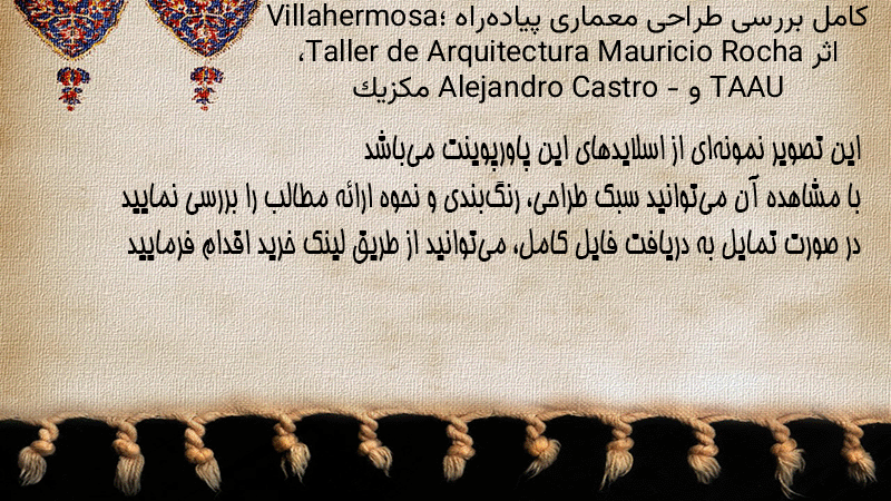 پاورپوینت کامل بررسی طراحی معماری پیادهراه Villahermosa؛ اثر Taller de Arquitectura Mauricio Rocha، TAAU و Alejandro Castro – مکزیک