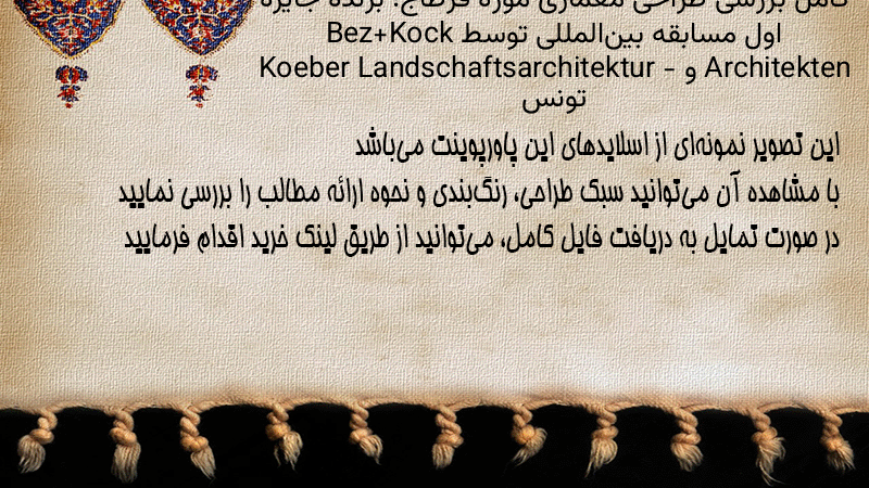 پاورپوینت کامل بررسی طراحی معماری موزه قرطاج؛ برنده جایزه اول مسابقه بینالمللی توسط Bez+Kock Architekten و Koeber Landschaftsarchitektur – تونس