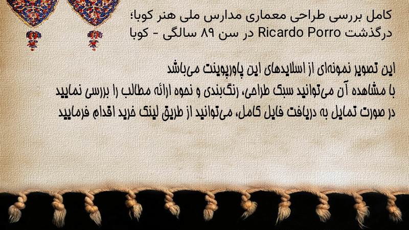 پاورپوینت کامل بررسی طراحی معماری مدارس ملی هنر کوبا؛ درگذشت Ricardo Porro در سن ۸۹ سالگی – کوبا