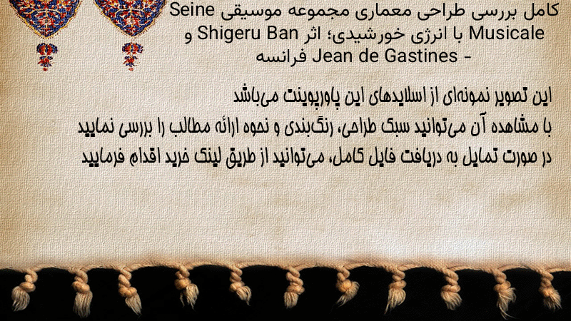 پاورپوینت کامل بررسی طراحی معماری مجموعه موسیقی Seine Musicale با انرژی خورشیدی؛ اثر Shigeru Ban و Jean de Gastines – فرانسه