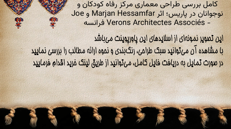 پاورپوینت کامل بررسی طراحی معماری مرکز رفاه کودکان و نوجوانان در پاریس؛ اثر Marjan Hessamfar و Joe Verons Architectes Associés – فرانسه