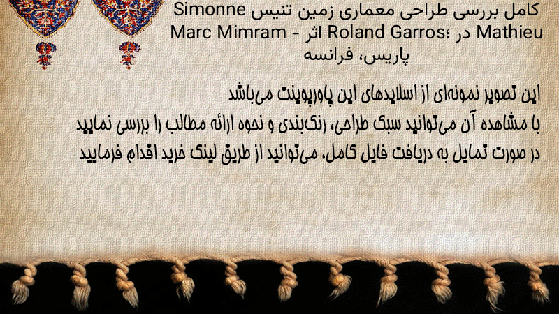 پاورپوینت کامل بررسی طراحی معماری زمین تنیس Simonne Mathieu در Roland Garros؛ اثر Marc Mimram – پاریس، فرانسه