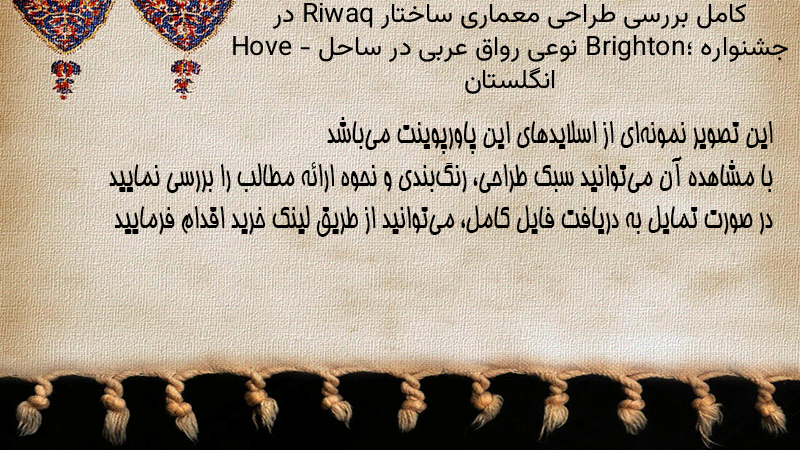پاورپوینت کامل بررسی طراحی معماری ساختار Riwaq در جشنواره Brighton؛ نوعی رواق عربی در ساحل Hove – انگلستان