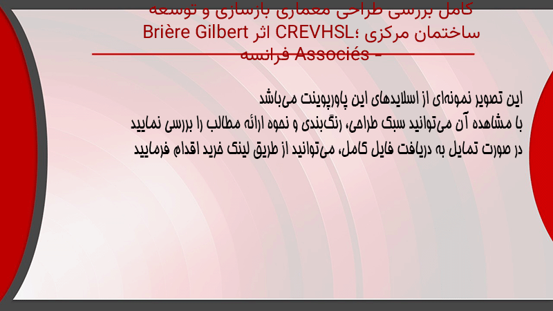 پاورپوینت کامل بررسی طراحی معماری بازسازی و توسعه ساختمان مرکزی CREVHSL؛ اثر Brière Gilbert Associés – فرانسه