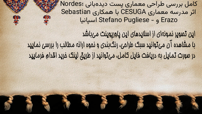پاورپوینت کامل بررسی طراحی معماری پست دیدهبانی Nordes؛ اثر مدرسه معماری CESUGA با همکاری Sebastian Erazo و Stefano Pugliese – اسپانیا