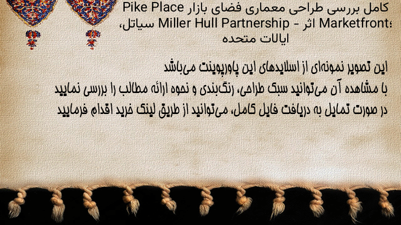 پاورپوینت کامل بررسی طراحی معماری فضای بازار Pike Place Marketfront؛ اثر Miller Hull Partnership – سیاتل، ایالات متحده