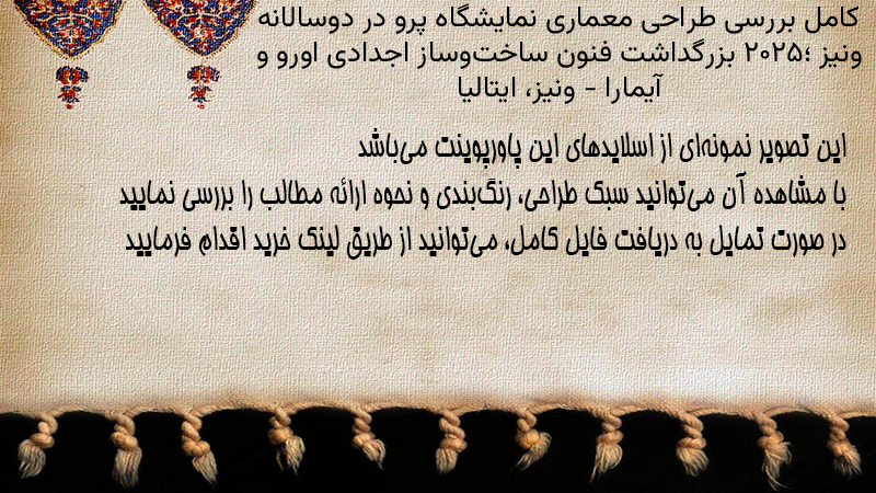 پاورپوینت کامل بررسی طراحی معماری نمایشگاه پرو در دوسالانه ونیز ۲۰۲۵؛ بزرگداشت فنون ساختوساز اجدادی اورو و آیمارا – ونیز، ایتالیا