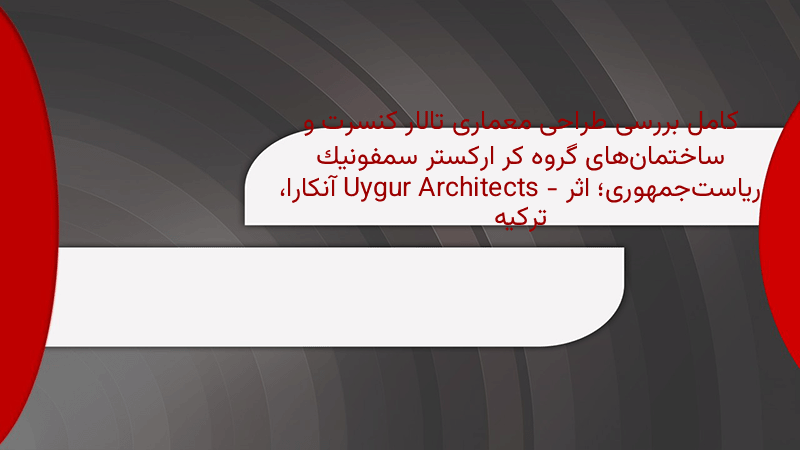 پاورپوینت کامل بررسی طراحی معماری تالار کنسرت و ساختمانهای گروه کر ارکستر سمفونیک ریاستجمهوری؛ اثر Uygur Architects – آنکارا، ترکیه