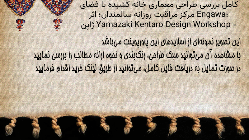 پاورپوینت کامل بررسی طراحی معماری خانه کشیده با فضای Engawa؛ مرکز مراقبت روزانه سالمندان؛ اثر Yamazaki Kentaro Design Workshop – ژاپن