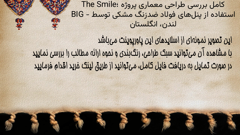 پاورپوینت کامل بررسی طراحی معماری پروژه The Smile؛ استفاده از پنلهای فولاد ضدزنگ مشکی توسط BIG – لندن، انگلستان