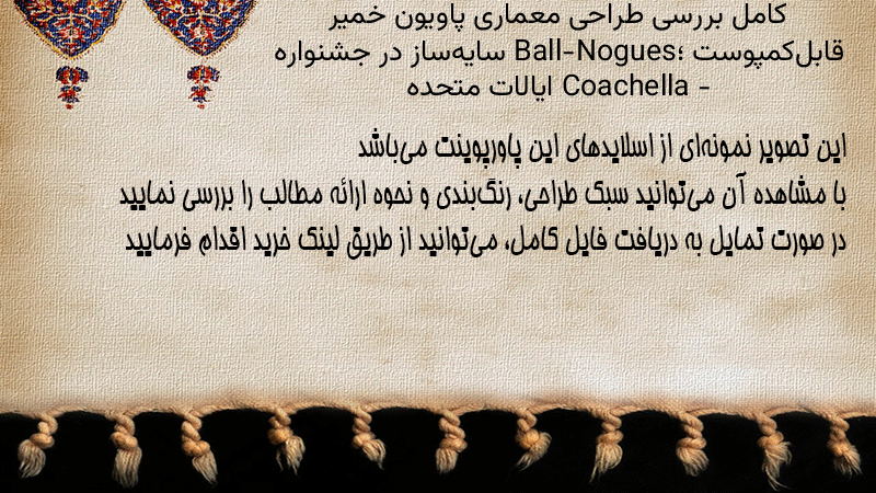 پاورپوینت کامل بررسی طراحی معماری پاویون خمیر قابلکمپوست Ball-Nogues؛ سایهساز در جشنواره Coachella – ایالات متحده