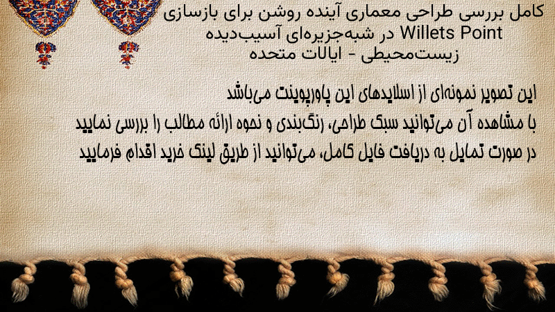 پاورپوینت کامل بررسی طراحی معماری آینده روشن برای بازسازی Willets Point در شبهجزیرهای آسیبدیده زیستمحیطی – ایالات متحده
