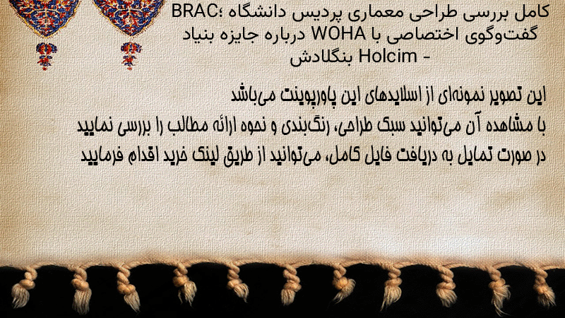 پاورپوینت کامل بررسی طراحی معماری پردیس دانشگاه BRAC؛ گفتوگوی اختصاصی با WOHA درباره جایزه بنیاد Holcim – بنگلادش