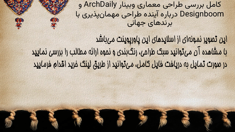 پاورپوینت کامل بررسی طراحی معماری وبینار ArchDaily و Designboom درباره آینده طراحی مهمانپذیری با برندهای جهانی