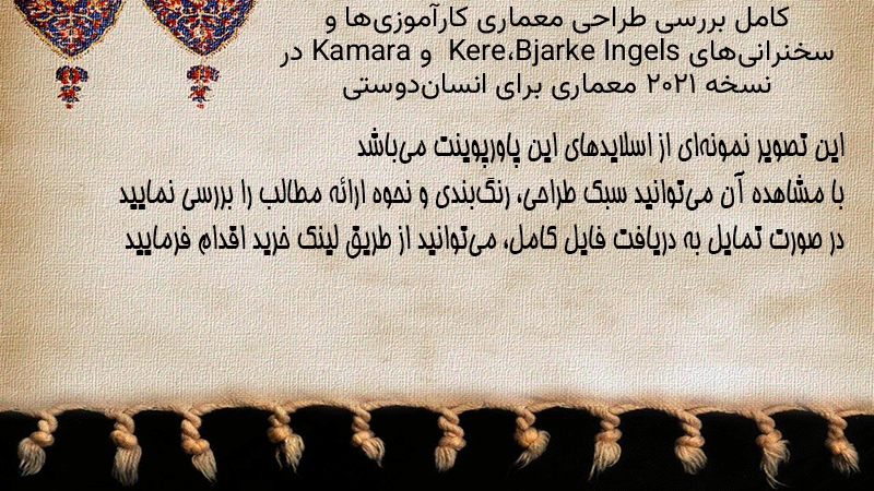 پاورپوینت کامل بررسی طراحی معماری کارآموزیها و سخنرانیهای Bjarke Ingels، Kere و Kamara در نسخه ۲۰۲۱ معماری برای انساندوستی