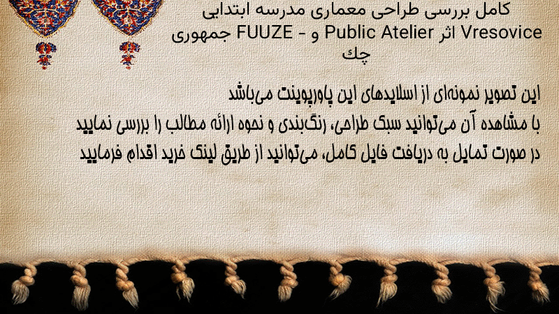 پاورپوینت کامل بررسی طراحی معماری مدرسه ابتدایی Vresovice اثر Public Atelier و FUUZE – جمهوری چک