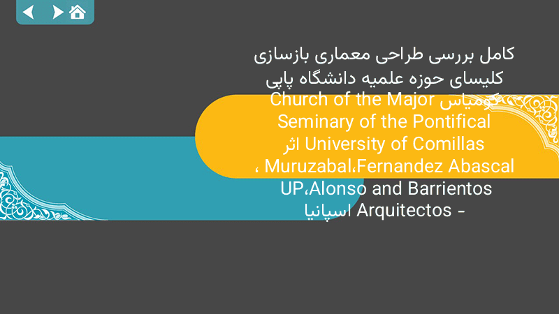 پاورپوینت کامل بررسی طراحی معماری بازسازی کلیسای حوزه علمیه دانشگاه پاپی کومیاس Church of the Major Seminary of the Pontifical University of Comillas اثر Fernandez Abascal، Muruzabal، Alonso and Barrientos، UP Arquitectos – اسپانیا