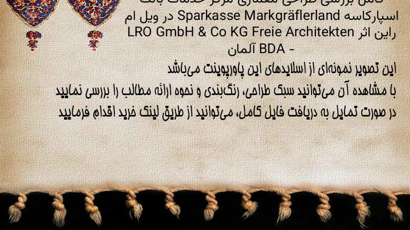 پاورپوینت کامل بررسی طراحی معماری مرکز خدمات بانک اسپارکاسه Sparkasse Markgräflerland در ویل ام راین اثر LRO GmbH & Co KG Freie Architekten BDA – آلمان