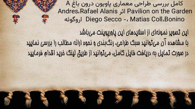 پاورپوینت کامل بررسی طراحی معماری پاویون درون باغ A Pavilion on the Garden اثر Rafael Alanis، Andres Bonino، Matias Coll، Diego Secco – اروگوئه
