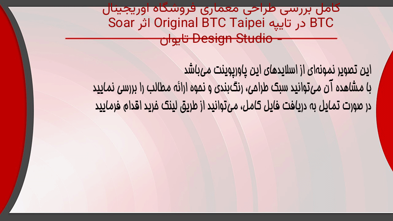 پاورپوینت کامل بررسی طراحی معماری فروشگاه اوریجینال BTC در تایپه Original BTC Taipei اثر Soar Design Studio – تایوان