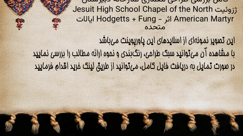 پاورپوینت کامل بررسی طراحی معماری نمازخانه دبیرستان ژزوئیت Jesuit High School Chapel of the North American Martyr اثر Hodgetts + Fung – ایالات متحده
