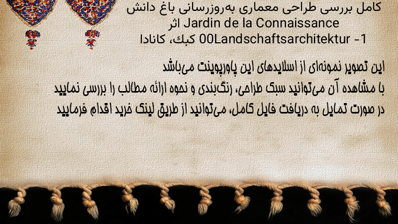 پاورپوینت کامل بررسی طراحی معماری بهروزرسانی باغ دانش Jardin de la Connaissance اثر ۱۰۰Landschaftsarchitektur – کبک، کانادا