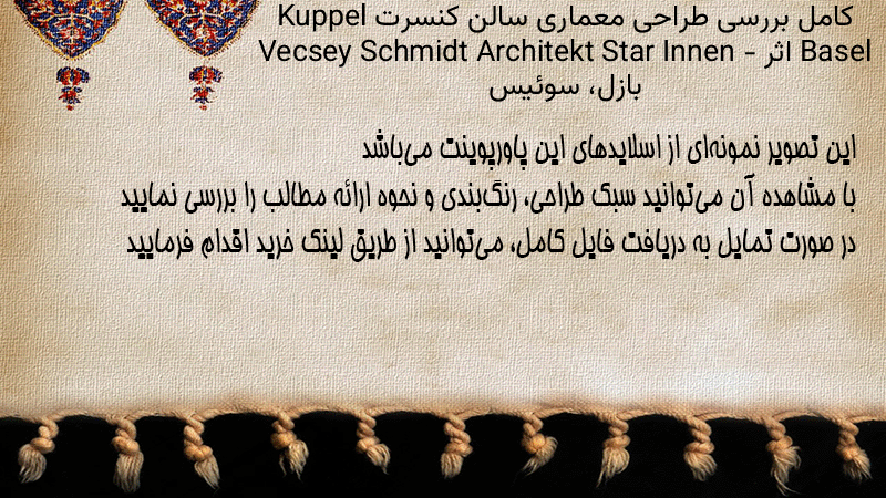 پاورپوینت کامل بررسی طراحی معماری سالن کنسرت Kuppel Basel اثر Vecsey Schmidt Architekt Star Innen – بازل، سوئیس