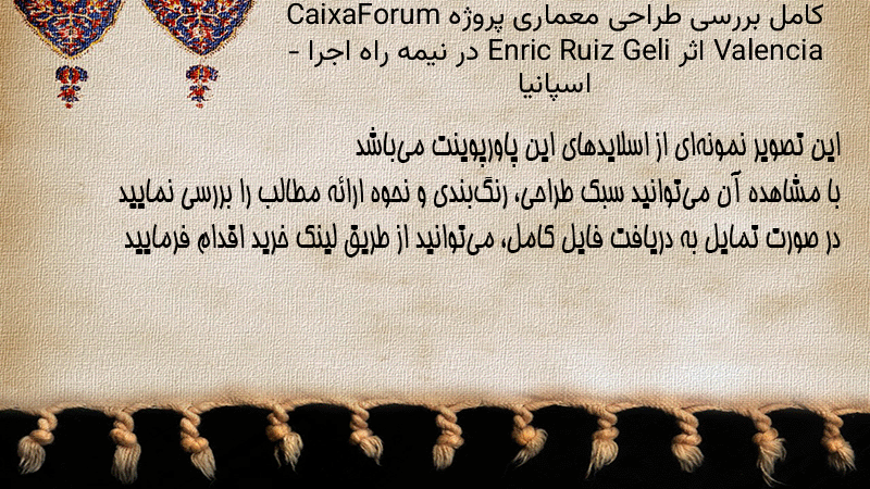 پاورپوینت کامل بررسی طراحی معماری پروژه CaixaForum Valencia اثر Enric Ruiz Geli در نیمه راه اجرا – اسپانیا