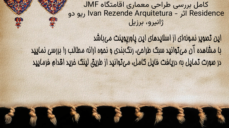 پاورپوینت کامل بررسی طراحی معماری اقامتگاه JMF Residence اثر Ivan Rezende Arquitetura – ریو دو ژانیرو، برزیل