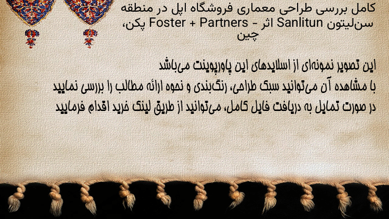 پاورپوینت کامل بررسی طراحی معماری فروشگاه اپل در منطقه سنلیتون Sanlitun اثر Foster + Partners – پکن، چین