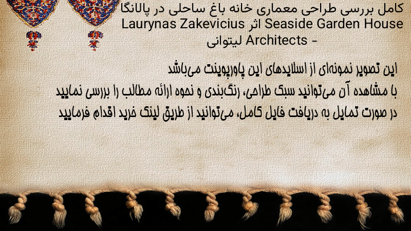 پاورپوینت کامل بررسی طراحی معماری خانه باغ ساحلی در پالانگا Seaside Garden House اثر Laurynas Zakevicius Architects – لیتوانی