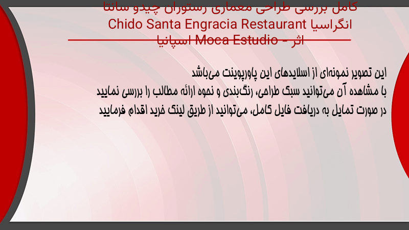 پاورپوینت کامل بررسی طراحی معماری رستوران چیدو سانتا انگراسیا Chido Santa Engracia Restaurant اثر Moca Estudio – اسپانیا