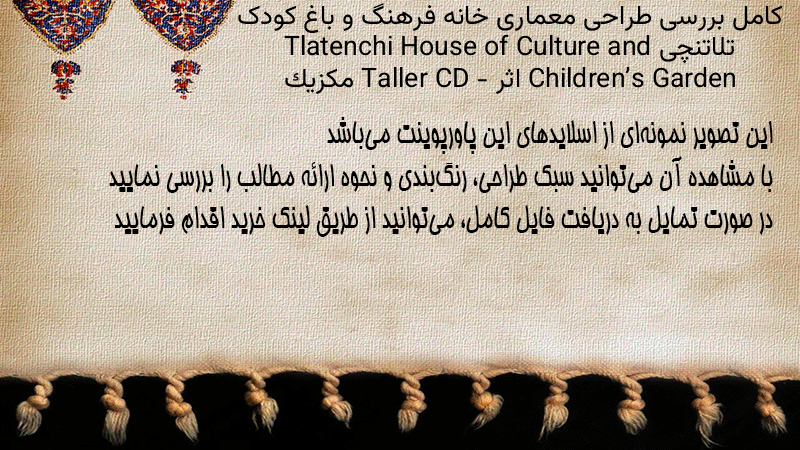 پاورپوینت کامل بررسی طراحی معماری خانه فرهنگ و باغ کودک تلاتنچی Tlatenchi House of Culture and Children’s Garden اثر Taller CD – مکزیک