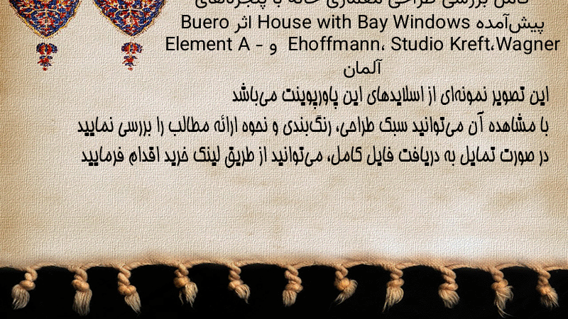پاورپوینت کامل بررسی طراحی معماری خانه با پنجرههای پیشآمده House with Bay Windows اثر Buero Wagner، Studio Kreft، Ehoffmann و Element A – آلمان