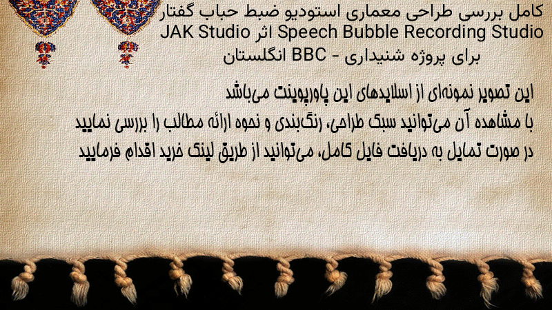 پاورپوینت کامل بررسی طراحی معماری استودیو ضبط حباب گفتار Speech Bubble Recording Studio اثر JAK Studio برای پروژه شنیداری BBC – انگلستان