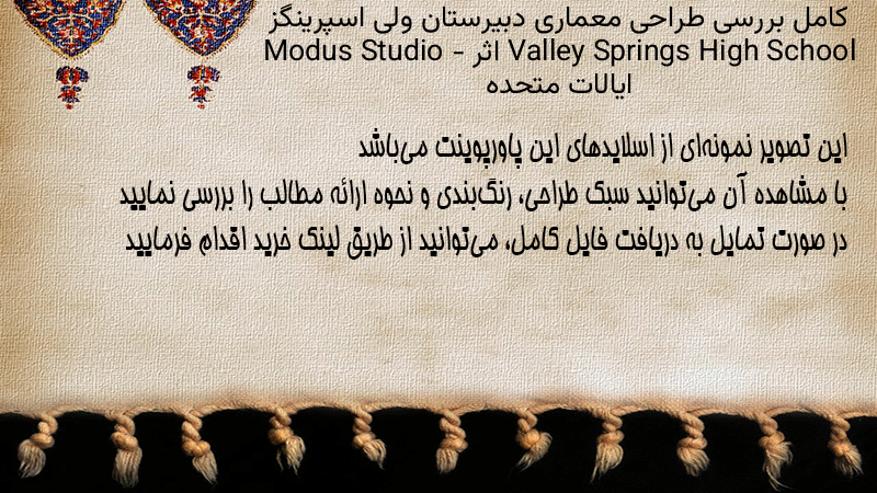پاورپوینت کامل بررسی طراحی معماری دبیرستان ولی اسپرینگز Valley Springs High School اثر Modus Studio – ایالات متحده