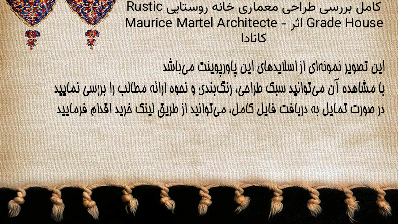 پاورپوینت کامل بررسی طراحی معماری خانه روستایی Rustic Grade House اثر Maurice Martel Architecte – کانادا